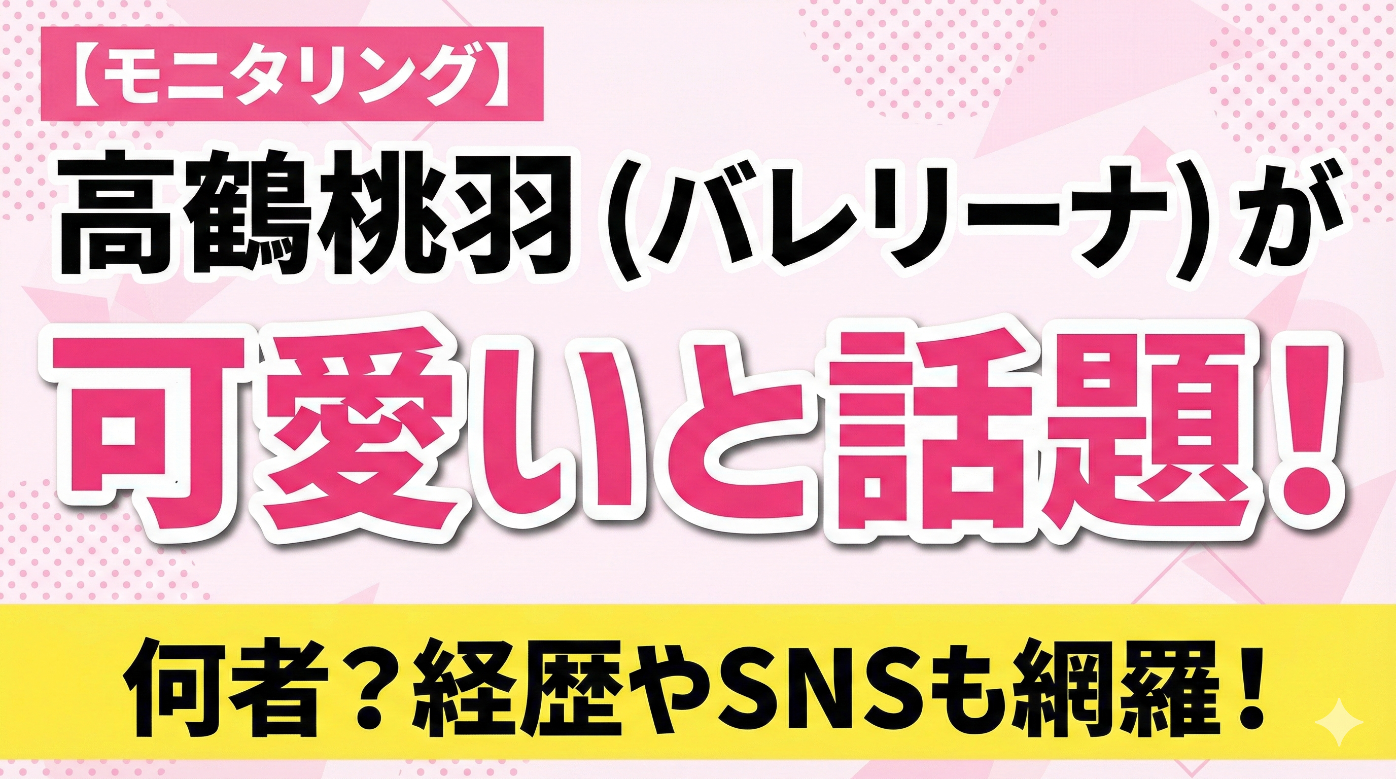 「ニンゲン観察バラエティ モニタリング」に出演し、「現役バレリーナで可愛すぎる」と話題沸騰中の高鶴桃羽さん。彼女は一体何者なのか、年齢や出身、彼氏の存在など、気になるプロフィールや経歴を徹底調査しました!