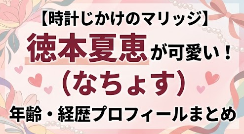 【時計じかけのマリッジ】徳本夏恵(なつえ・なちょす)が可愛い!年齢や経歴プロフィールまとめ